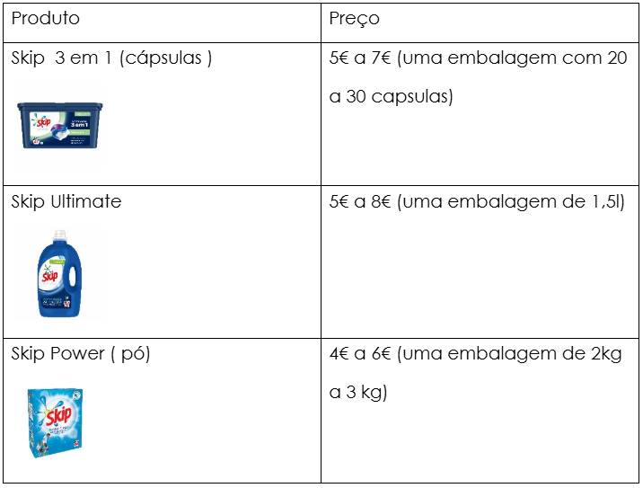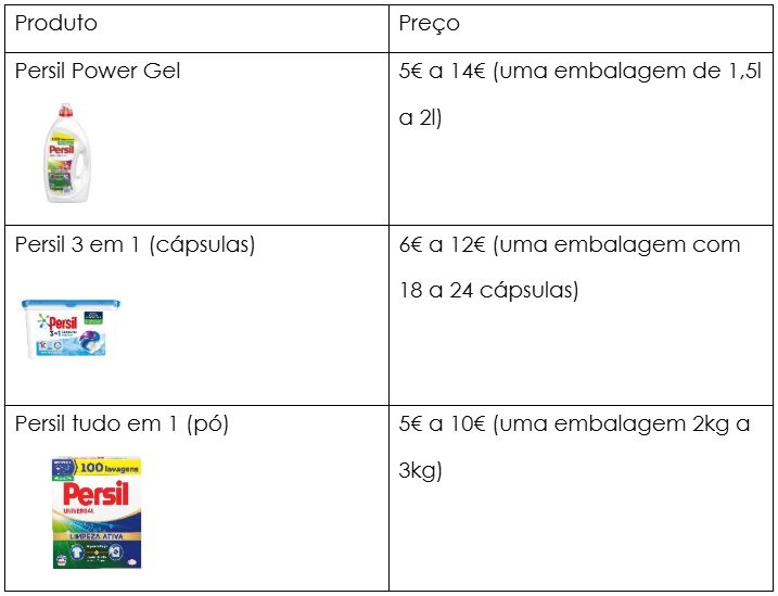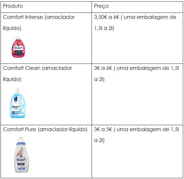 Principais produtos que comercializam no mercado português as 3 principais marcas bem como o seu preço